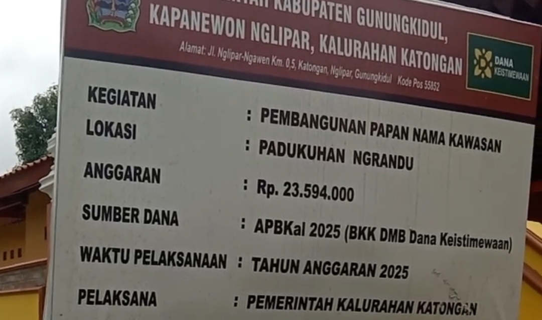 Yogyakarta – batamtimes.co – Proyek pembangunan Rest Area Kalurahan Katongan, Kapanewon Nglipar, Kabupaten Gunungkidul, provinsi Daerah Istimewa Yogyakarta senilai Rp 1,4 Miliar diduga tanpa melalui proses lelang.