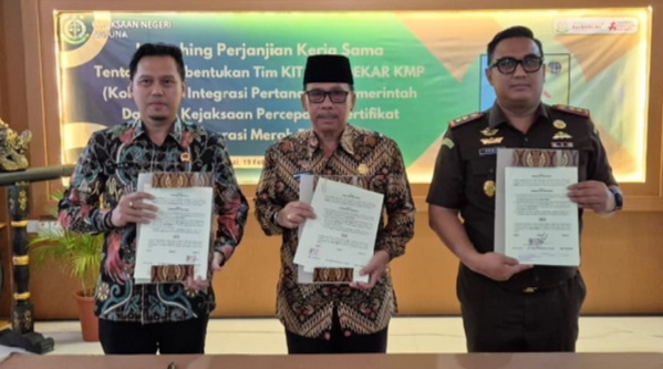 Natuna – Batamtimes.co – Kejaksaan Negeri (Kejari) Kabupaten Natuna, Kepulauan Riau secara resmi launching Perjanjian Kerja Sama (PKS) tentang pembentukan tim KITA PENDEKAR KMP (Kolaborasi Integrasi Pertanahan, Pemerintah Daerah, Kejaksaan Percepatan Sertifikat Koperasi Merah Putih) digelar di Aula Kejaksaan Negeri Natuna, Kamis (19/02/2026).