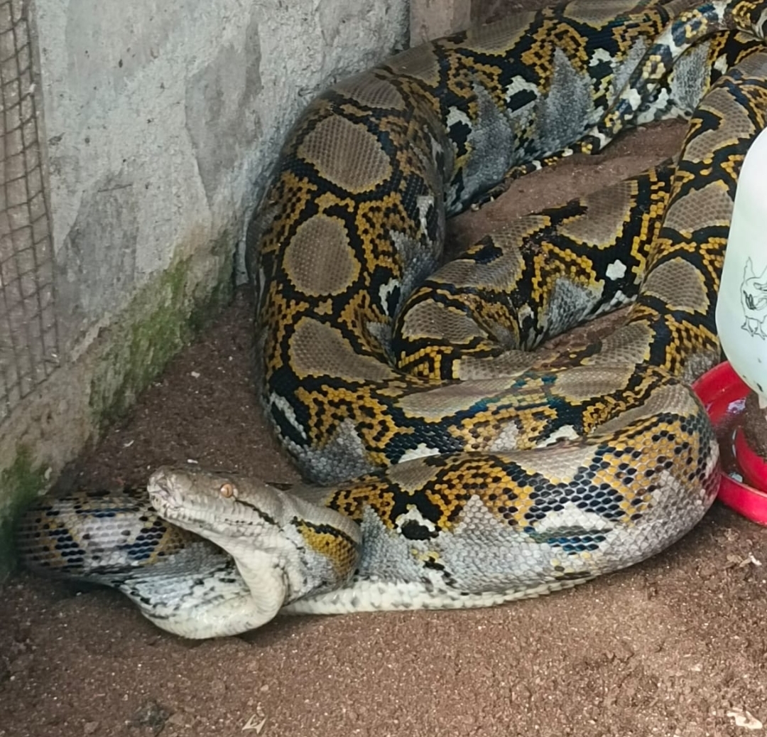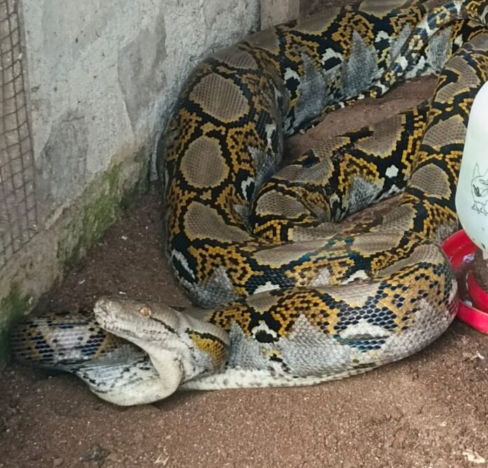 Kalteng – batamtimes.co – Seekor ular piton sepanjang kurang lebih empat meter dengan diameter sekitar empat inci masuk ke kandang ternak milik warga di Jalan G. Obos IX, Palangkaraya, Kalimantan Tengah, Senin (23/2/2026).
