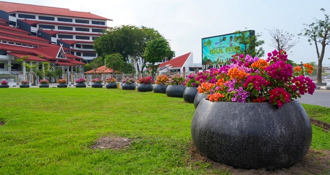 Puluhan pot tersebut tampak tertata rapi di beberapa titik strategis, mulai dari kawasan Bundaran Punggur (Bundaran Hamidah) hingga area sekitar Kantor Badan Pengusahaan (BP) Batam.